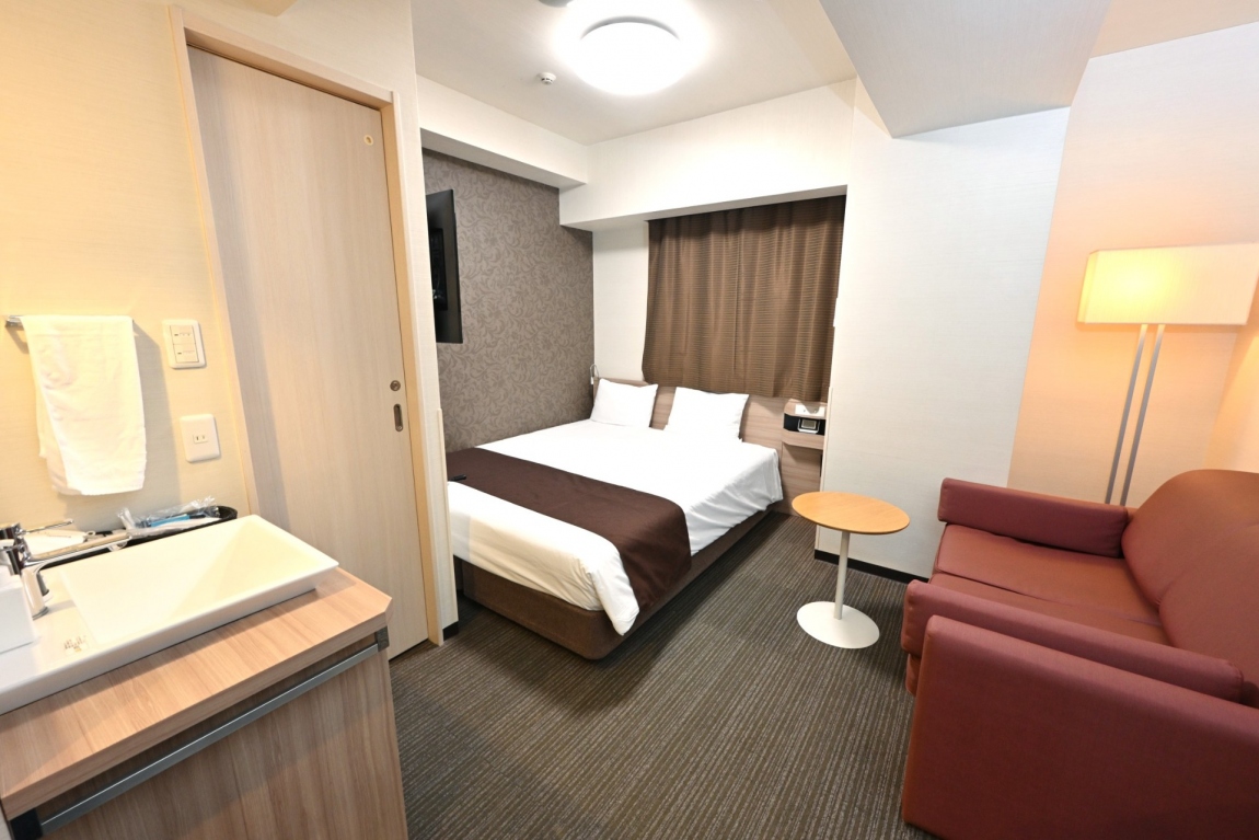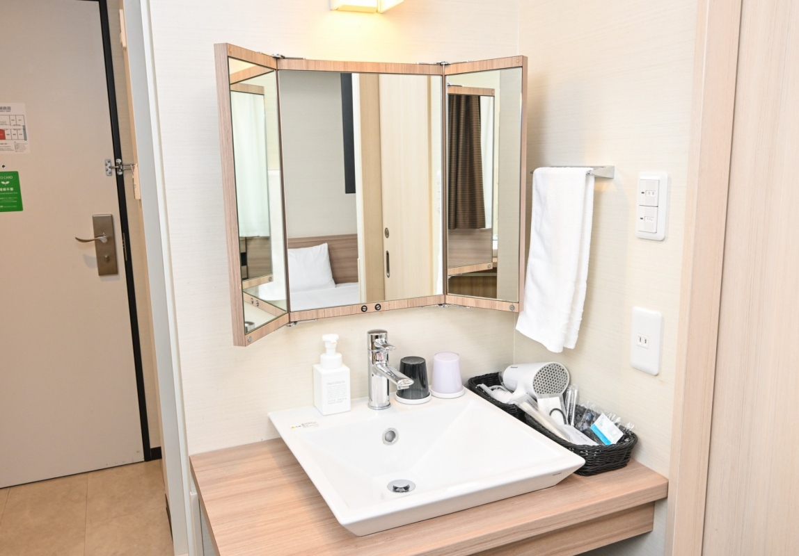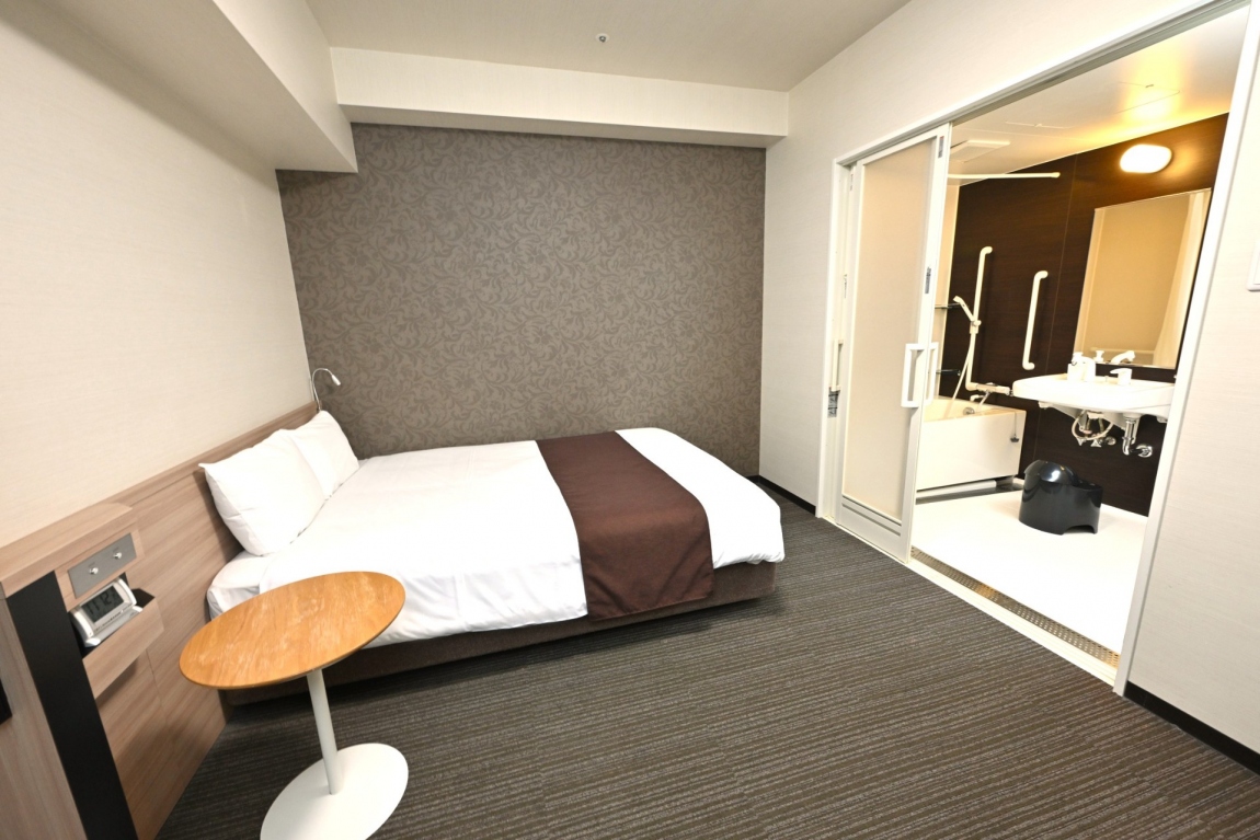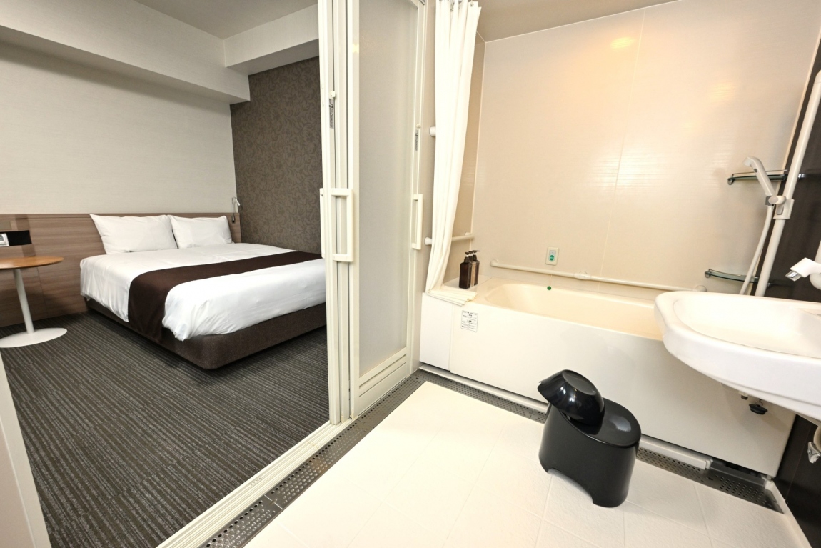 客室内バリアフリーです。洗面室(バス・トイレ)に十分なスペースと、入り口には大型のスライドドアを採用しました。お子様連れやご年配のお客様にも安心してご利用いただけます。