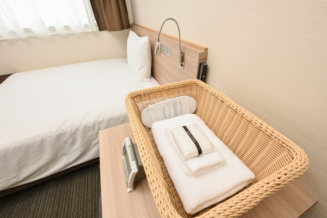 当ホテルは海洋プラスチックを原材料とした布団用中綿素材「Suprelle blue」を使用した寝具(掛布団、別ベッドパット、枕)を全室にご用意しています。